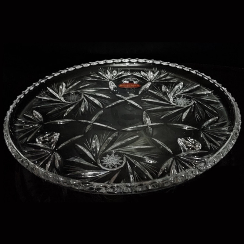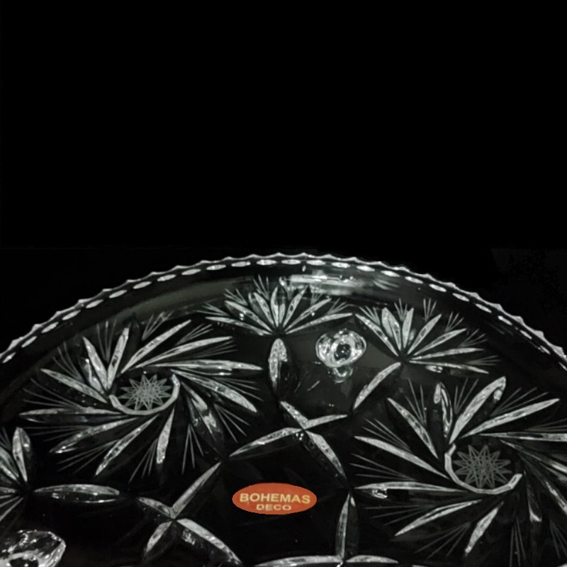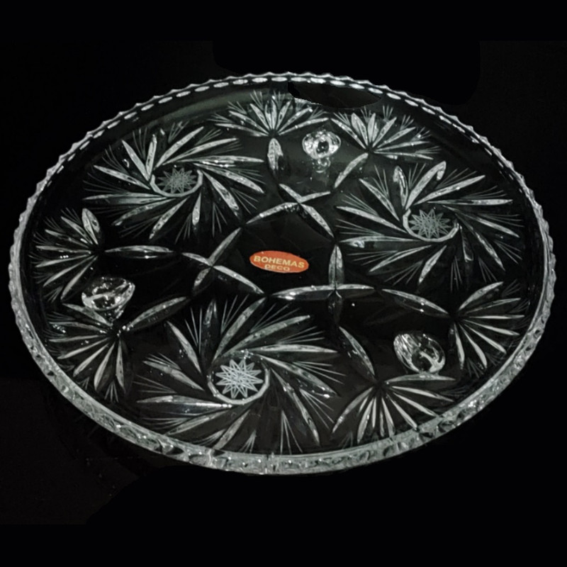 یک عدد شیرینی خوری بزرگ کریستال سه پایه 30 سانتی متری دکو بوهمیا مدل خورشیدی گلکسی استار کد 755