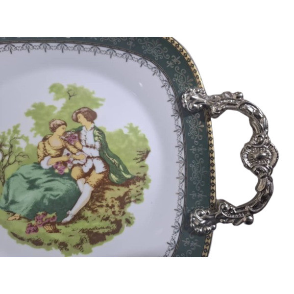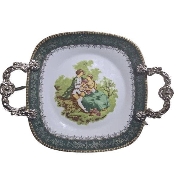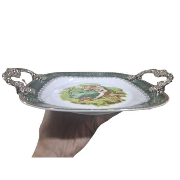 شیرینی خوری قالب مربع دسته دار چینی پردیس کاشان مدل لیلی و مجنون سبز تیره رنگ می باشد که کارآیی بیشماری در خانه شما خوبان از جمله برای پذیرایی در مراسمات میهمانی برای سرو انواع شیرینی و دسر و همچنین در سفره برای سرو انواع خورشت و ... کاربرد دارد. اندازه استاندارد و متوسط این محصول برای مصارف روزمره خانه نیز کارآیی دارد. ابعاد دقیق این محصول عبارت است از: طول دسته به دسته 32سانتی متر می باشد و ابعاد خود بشقاب 24 سانتی متر می باشد. دسته ها به وسیله پیچ آلنی و چسب 123 از پشت بشقاب سفت شده اند طوری که به روز زمان شلی و لقی به هیچ عنوان نخواهد داشت. با تشکر از اعتماد شما - چینی کادوئی ایفل