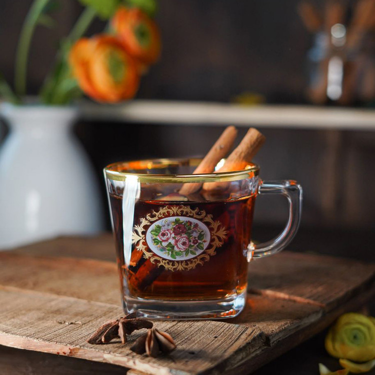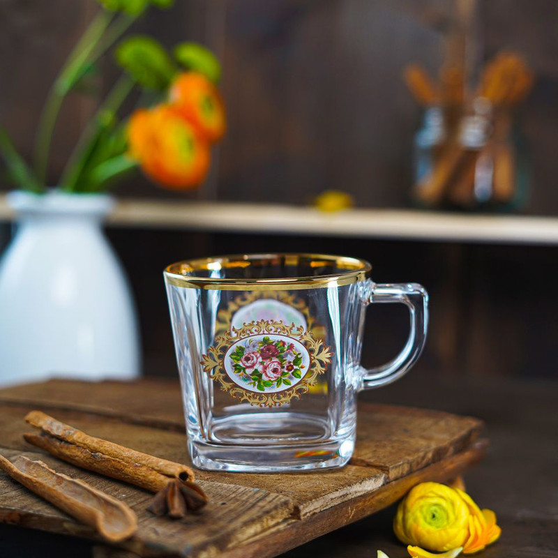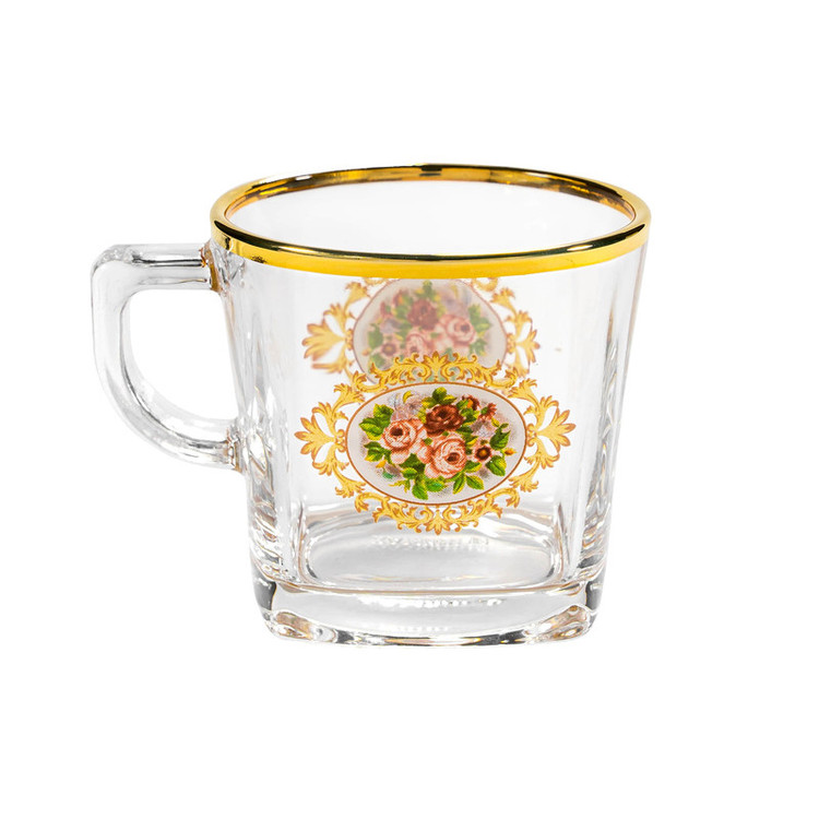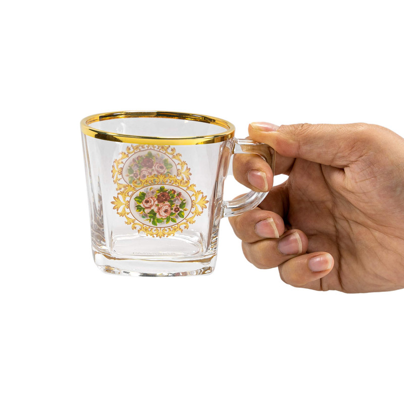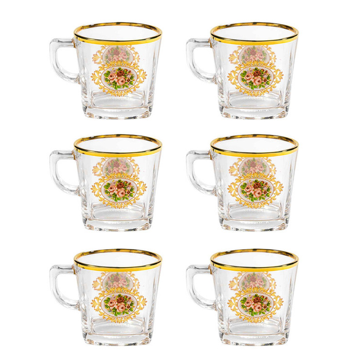 فنجان بلینک مکس مدل کار لب طلایی گل سرخ کد 89 بسته 6 عددی