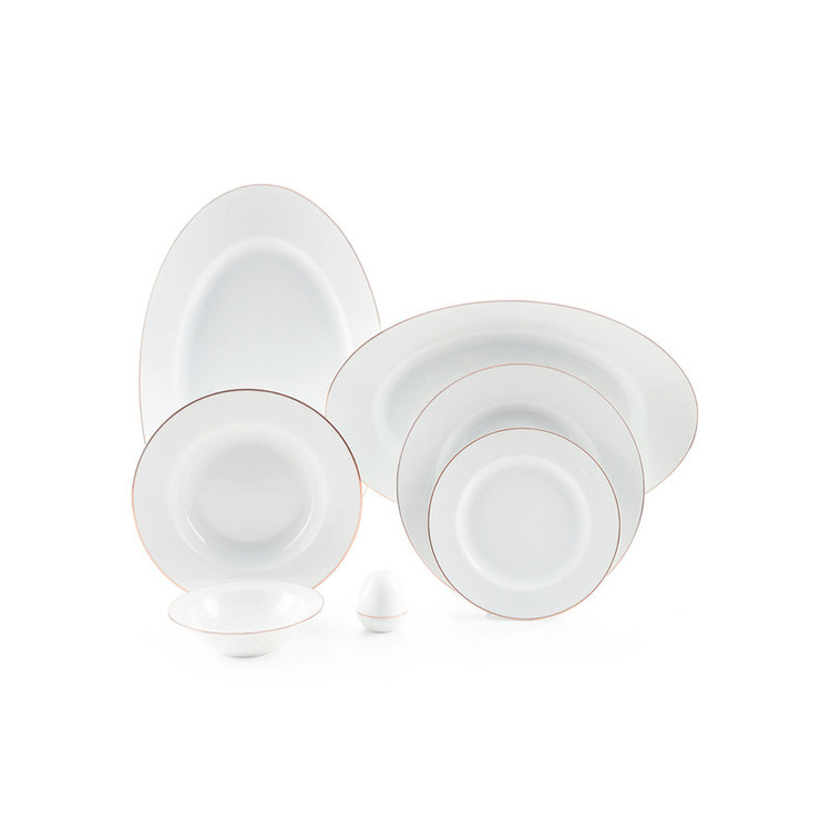 اقلام سرویس: سالادخوری , بشقاب غذاخوری , دیس , بشقاب خورشخوری , پیشدستی , نمکپاش و فلفلپاش