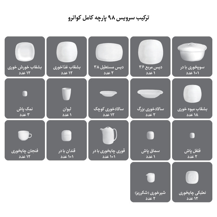 تعداد کلی ظروف: 98 پارچه