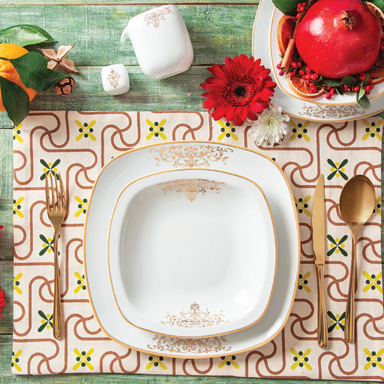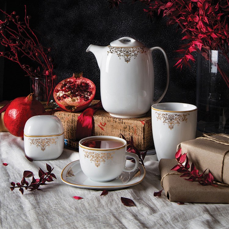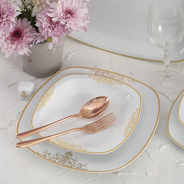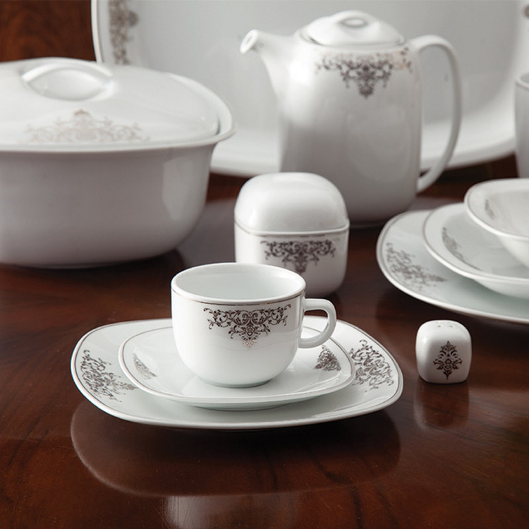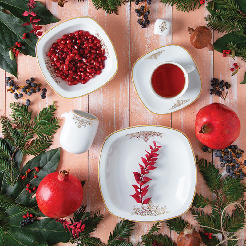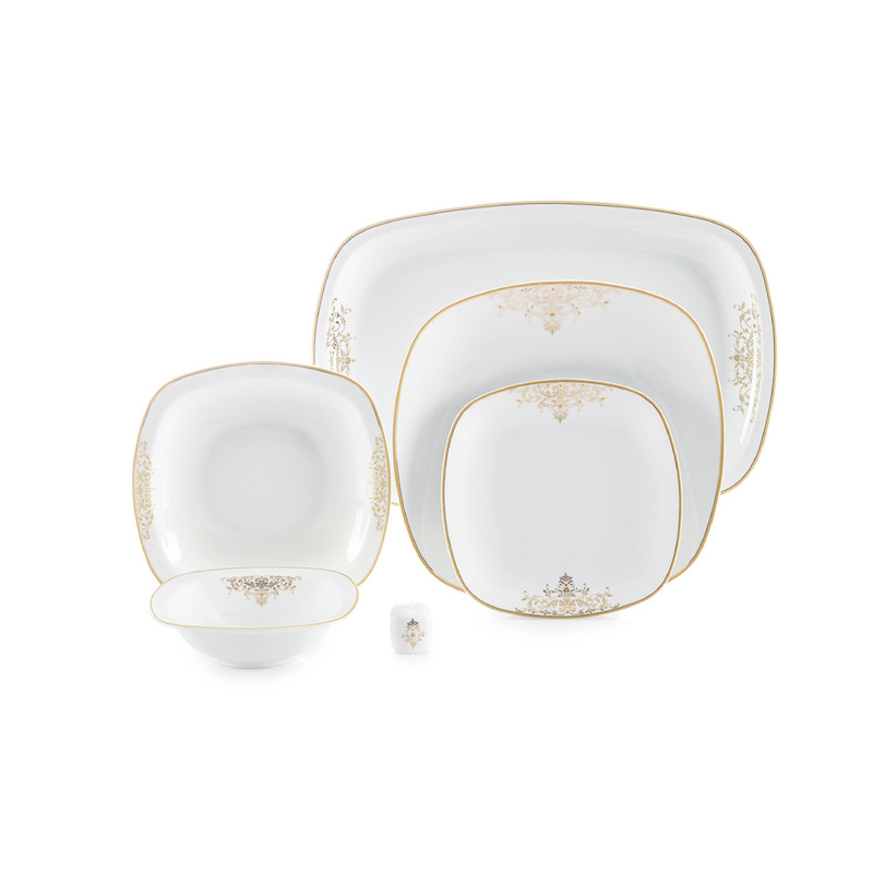 سوپخوری , ظرف سالاد , دیس , بشقاب غذاخوری , بشقاب خورشخوری , پیشدستی , فنجان , نعلبکی , قندان , نمکپاش و فلفلپاش , شیرخوری , پیاله