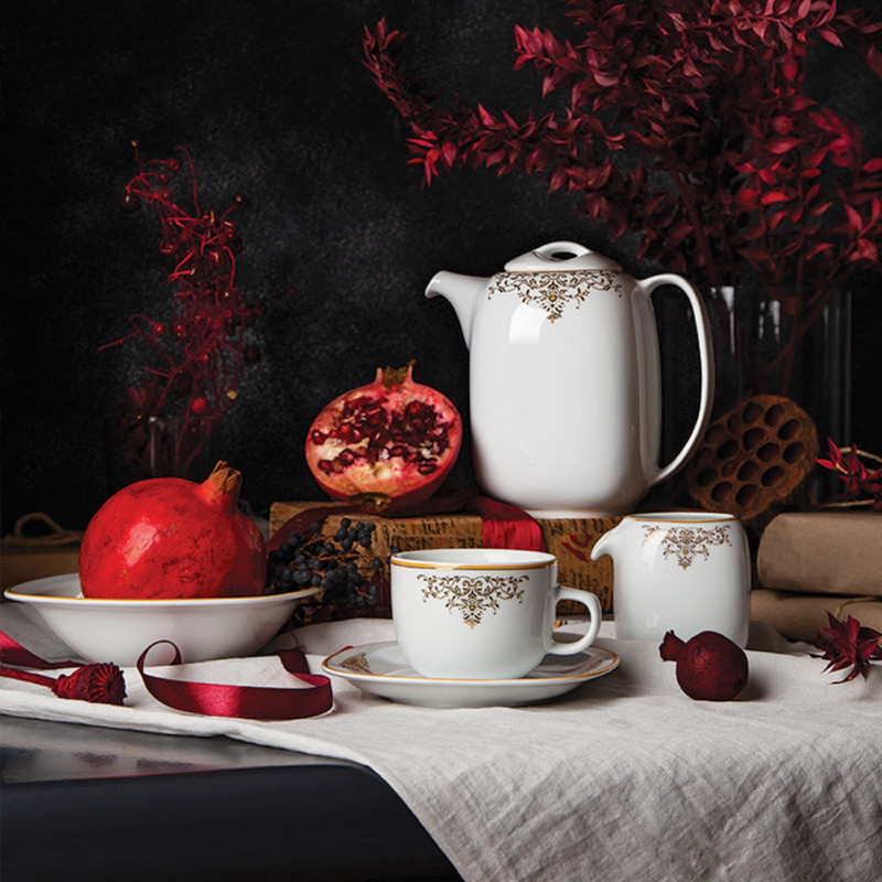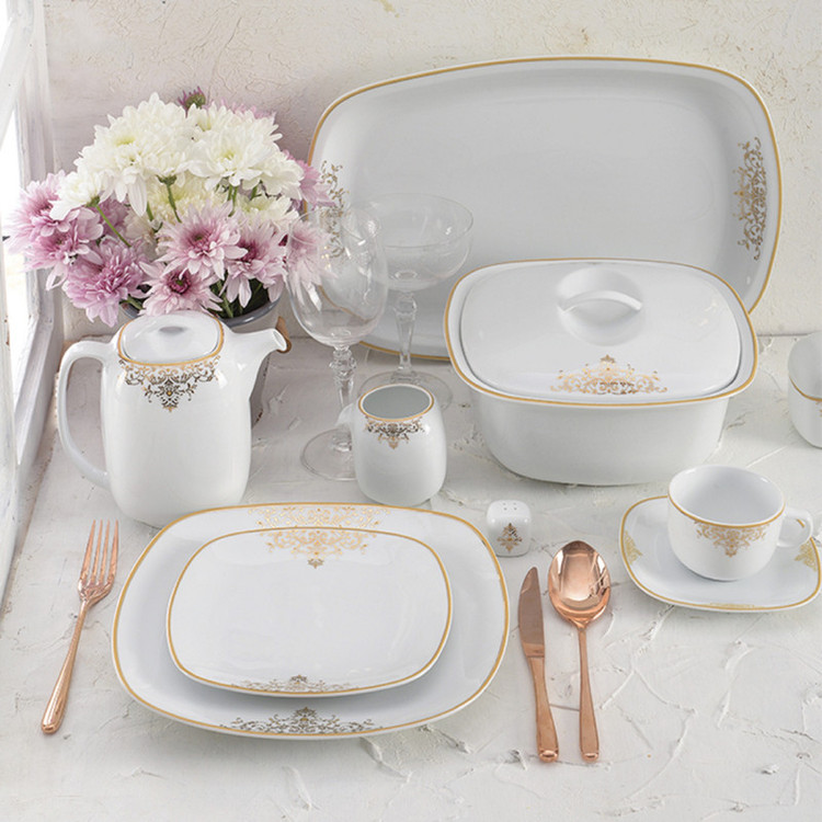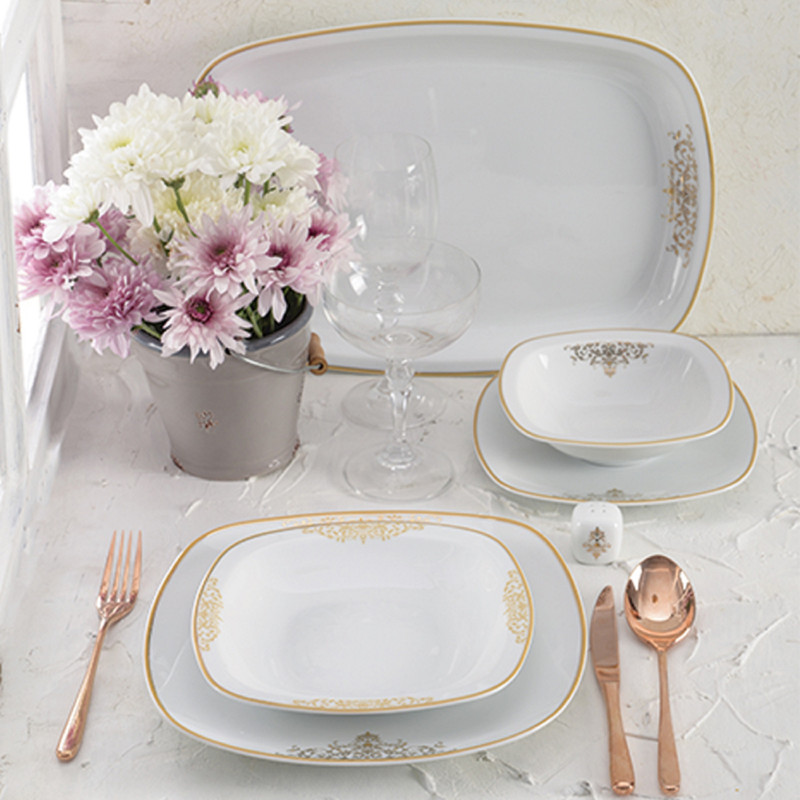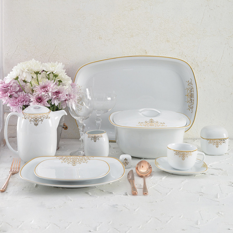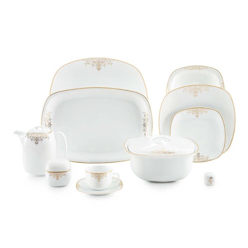 اقلام سرویس: سوپخوری , ظرف سالاد , دیس , بشقاب غذاخوری , بشقاب خورشخوری , پیشدستی , فنجان , نعلبکی , قندان , نمکپاش و فلفلپاش , شیرخوری , پیاله