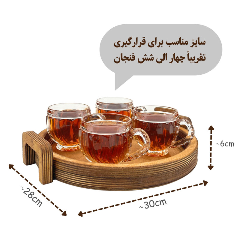 یکی از این ظروف پذیرایی، سینی چوبی مدل SN11 است. این مدل سینی به صورت تک سایز عرضه می شود و ابعاد آن به ترتیبِ طول ، عرض و ارتفاع در حدود 30، 28 و 6 سانتی متر و وزن آن معادل 480 گرم است.