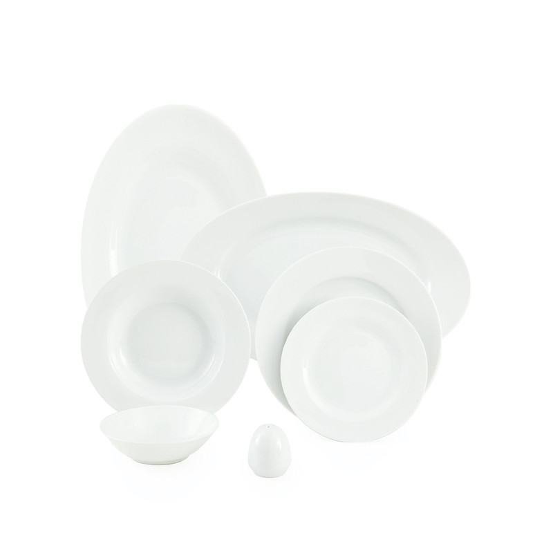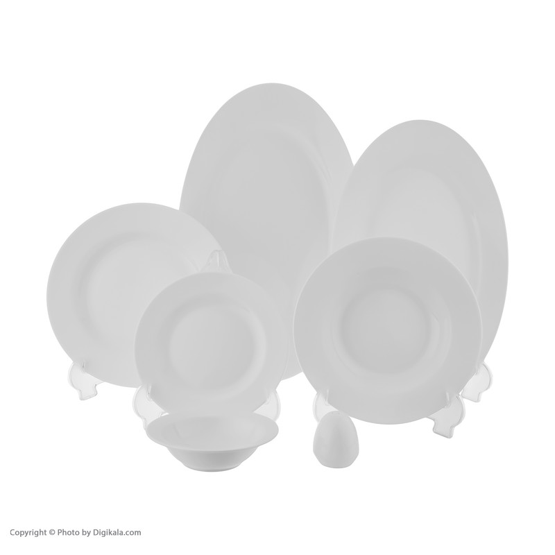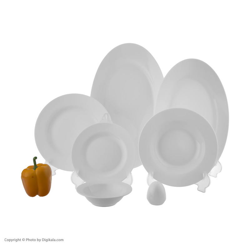 اقلام سرویس: دیس , بشقاب غذاخوری , بشقاب خورشخوری , پیشدستی , نمکپاش و فلفلپاش , پیاله