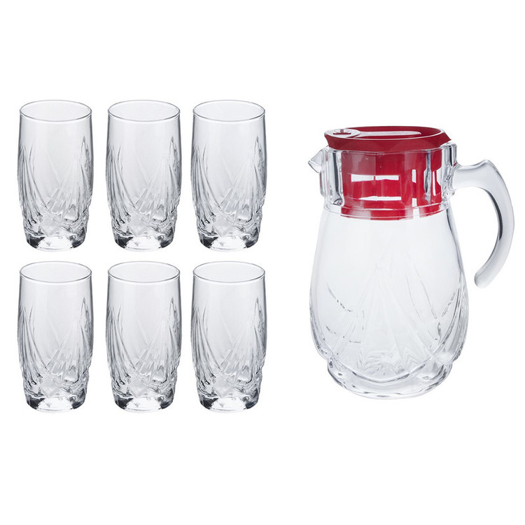 - پارچ با درپوش پلاستیکی - وزن پارچ 1020 گرم - گنجایش پارچ 1500 سیسی - وزن هر لیوان 195 گرم - گنجایش 330 سیسی