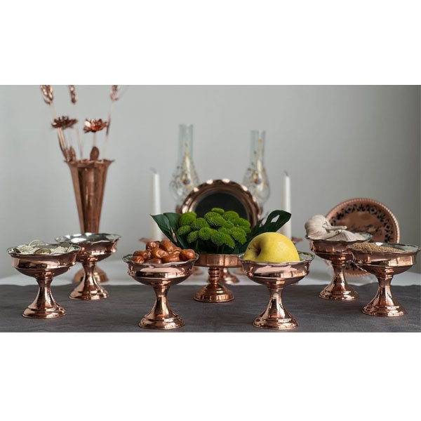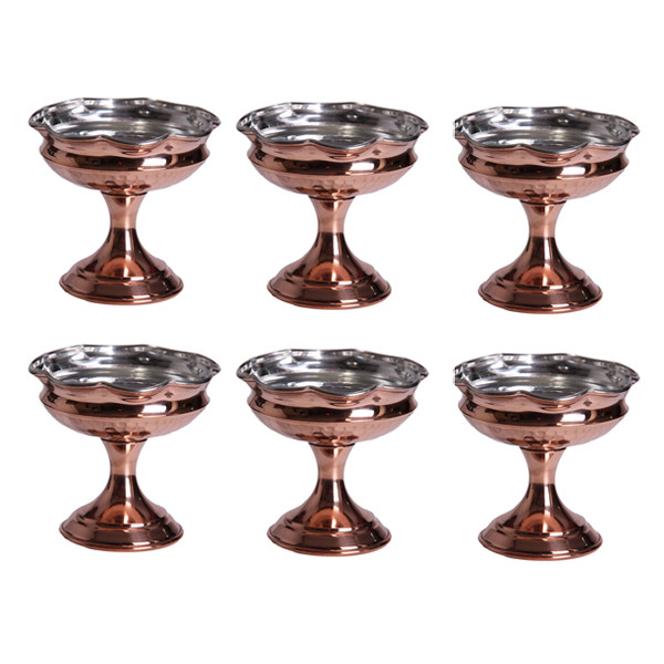 ست شش تایی پیاله آجیل خوری مسی از مس مرغوب ساخته شده است. نانو شده است. این ظروف بسیار کاربردی می باشد و برای هفت سین و آجیل خوری و بستنی خوری و انار خوری شب یلدا و..... نیز مناسب است. وزن هر پیاله حدود 60 گرم می باشد و ارتفاع آن نیز حدود 7 سانتی متر است و قطر آن نیز 8 سانتی متر می باشد.