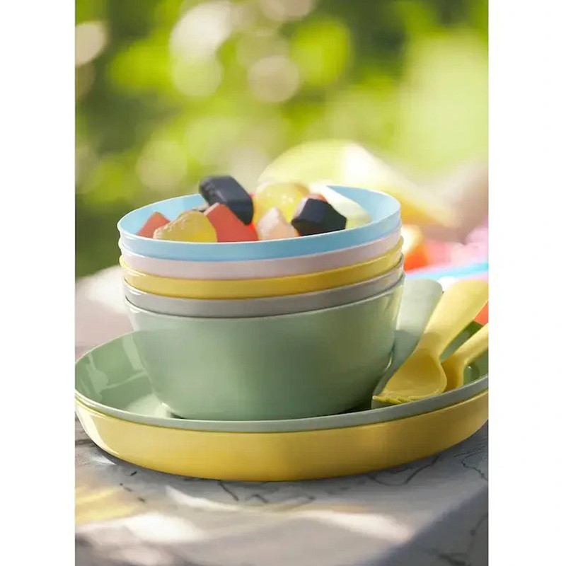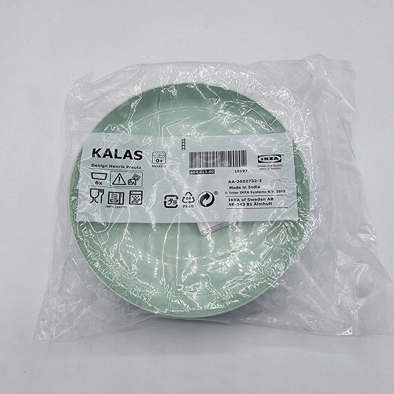 بشقاب 6 تایی ایکیا مدل KALAS بسیار مقاوم در برابر ضربه و خراش می باشند و شما همواره می توانید در سفرها و پیکنیک هایتان و حتی در ماشین همراه خود داشته باشید. این ست ظروف رنگی ایکیا مدل KALAS بسیار برای کودکان شما نیز جذاب می باشند هنگامی که می خواهند یاد بگیرند به تنهایی غذا بخورند. جنس این ظروف کاملا تایید شده و تست شده توسط شرکت ایکیا می باشد و در ساخت آن از پلاستیک بی ضرر استفاده شده است.