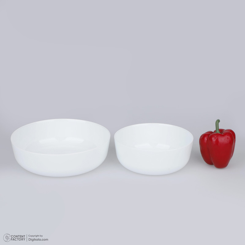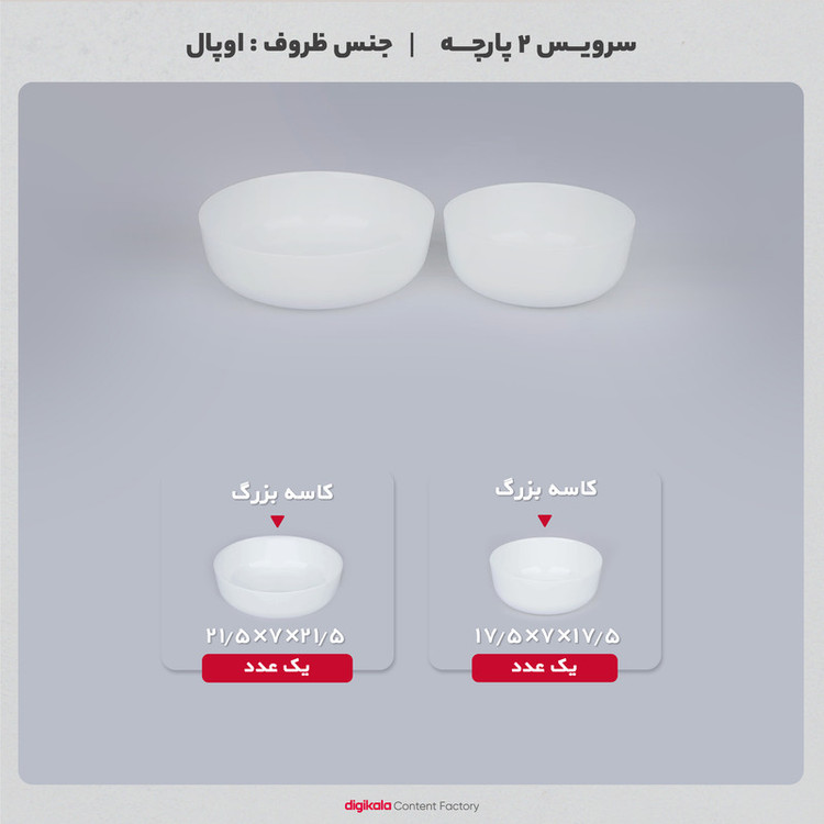 سرويس 2 پارچه کاسه مدل آون از محصولات باکیفیت برند دینو است و توسط کارخانجات چینی مقصود تولید شده است. بهرهگیری از بهترین متریال در تولید ظروف اوپال چینی مقصود باعث شده که این برند به یکی از بزرگترین تولیدکنندگان ظروف اوپال در کشور تبدیل شود. سرویس 2 پارچه کاسه مدل آون از دو قطعه ظرف شامل دو کاسه بزرگ و کوچک تشکیل شده است. جنس این ظروف از اوپال بوده و به همین دلیل وزن سبک و مقاومت بالایی در برابر شکستگی و لبپریدگی دارند. این سرویس کلاسیک و زیبا طراحی سادهای دارد و در تکرنگ سفید تولید و به بازار عرضه شده است. به دلیل این طراحی ساده در عین زیبایی، به سادگی از مد نمیرود و میتوان سالها از آن استفاده کرد. این محصول شامل یک کاسه بزرگ به ابعاد 7×21.5×21.5 سانتیمتر با وزن 650 گرم و یک کاسه کوچک به ابعاد 7×17.5×17.5 سانتیمتر با وزن 495 گرم است. برای تمیز کردن ظروف این سرویس میتوان از روش شستشو با دست و یا شستشو با ماشین ظرفشویی استفاده کرد و ظروف را به اسانی تمیز نمود. این محصول در برابر شوک حرارتی مقاومت بالایی دارد و میتوان از آن در مایکرویو نیز استفاده کرد.