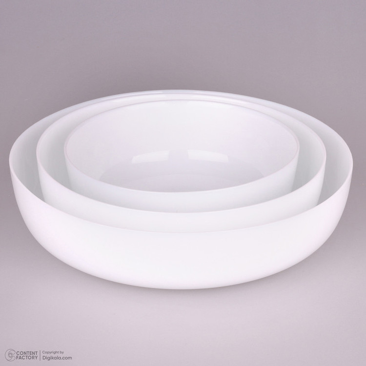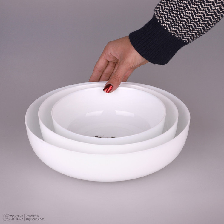 توضیحات ابعاد ظروف: کاسه بزرگ: ۲۶.۵x۲۶.۵x۶.۵ سانتیمتر - کاسه متوسط: ۲۱.۵x۲۱.۵x۶.۵ سانتیمتر - کاسه کوچک: ۱۷.۵x۱۷.۵x۶.۵ سانتیمتر