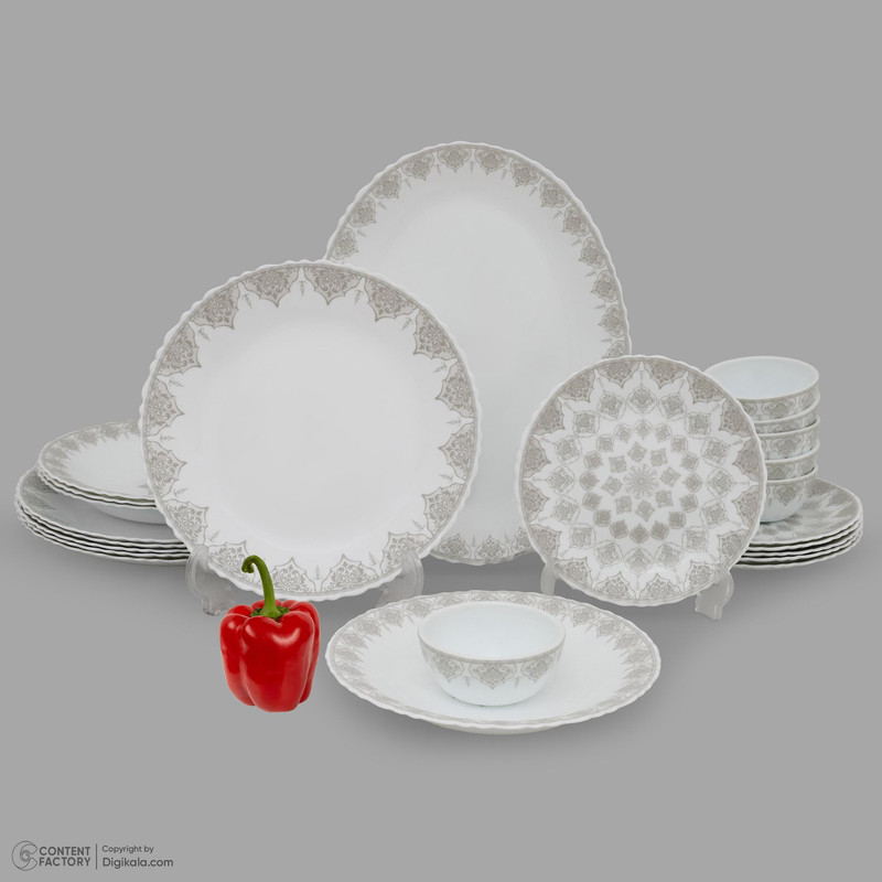 اقلام سرویس: بشقاب غذاخوری , دیس , ظرف سالاد , پیشدستی , بشقاب خورشخوری , پیاله
