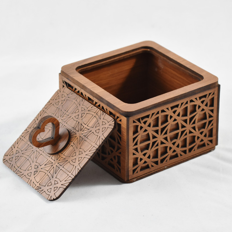 وزن150 گرمجنسامدیافسایر توضیحات- کالای فوق از جنس ام دی اف دو طرف روکش دار ساخته شده است - قابل استفاده برای قند و شکلات و ... می باشدابعاد10x10x7 سانتیمتر