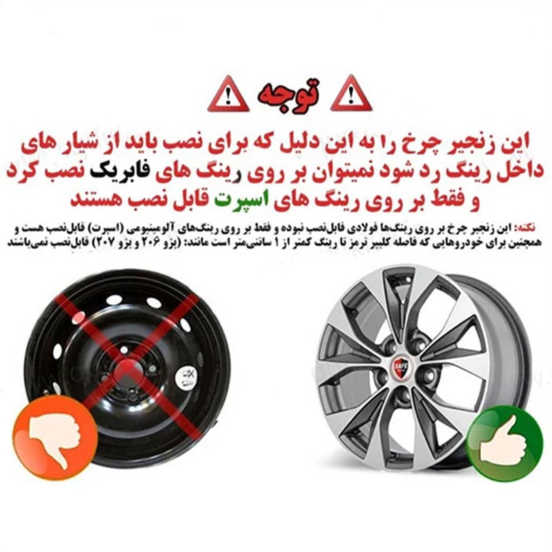 سایر توضیحات: wheel diameter ۱۷-۲۰ inch - مناسب برای رینگ های اسپرت -افزایش چسبندگی لاستیک به جاده-طراحی بادوام-نصب سریع و آسان-بهبود کنترل فرمان و جلوگیری از لغزش-قابل استفاده در جادههای شهری و برونشهری