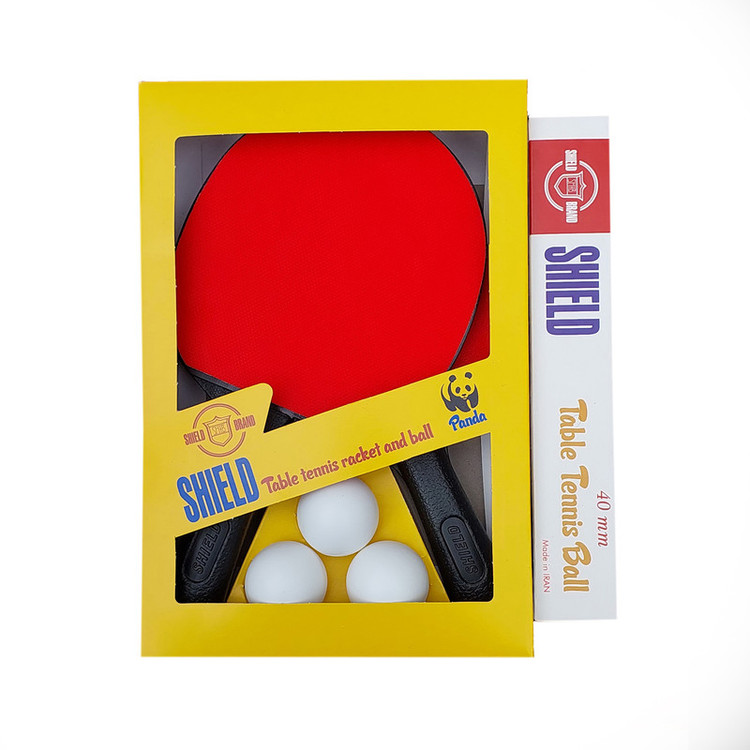 دو عدد دسته راکت 3عدد توپ پینگ پنگ 6 عدد توپ پینگ پنگ شیلد بصورت هدیه