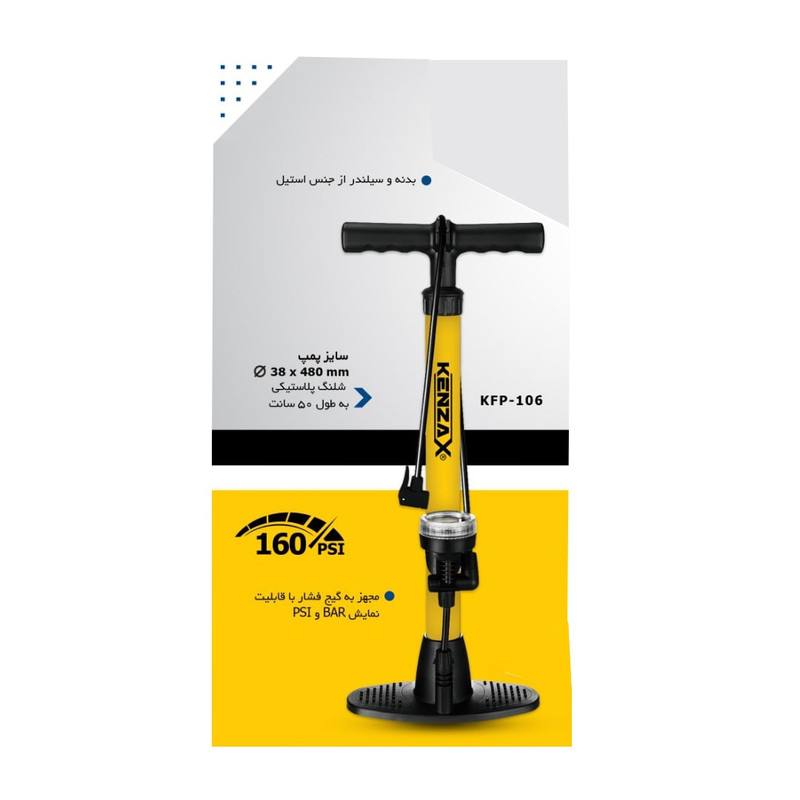 بدنه و سیلندر از جنس استیل شلنگ پلاستیکی به طول 50 سانت مجهز به گیج فشار با قابلیت نمایش BAR و PSI