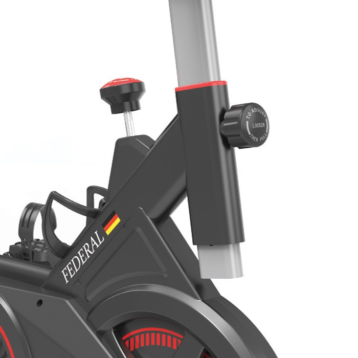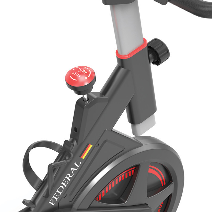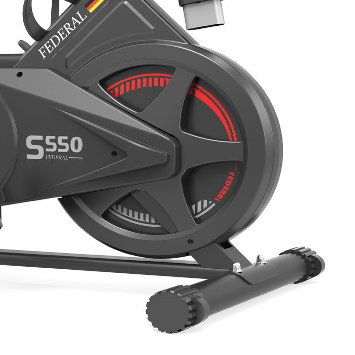 دوچرخه اسپینینگ فدرال مدل FEDERAL-S550 با فلایویل سنگین 10 کیلوگرمی نسل جدید اسپینینگ فدرال است که بهترین شرایط تمرین را برای شما فراهم میکند، همچنین دستگاه دارای صفحه نمایش حرفه ای و صندلی با قابلیت تنظیم در دو حالت افقی و عمودی میباشد. دوچرخه اسپینینگ مدل FEDERAL-S550 را به یکی از بهترین انتخاب ها برای برای استفاده در باشگاه و در منزل کند . تحمل وزن این دوچرخه حداقل 100 کیلوگرم است . ابعاد دستگاه 104 * 46 *114 سانتی متر میباشد، دوچرخه اسپینینگ FEDERAL دارای پدال های با نگه دارنده پا و همچنین قابلیت تنظیم ارتفاع دسته ها و کنسول شرایط راحتی را در زمان تمرین برای کاربر فراهم میکند . دوچرخه اسپینینگ مدل FEDERAL-S550 دارای بدنه مقاوم و با کیفیت ، با طراحی زیبا از لحاظ بصری نیز شما را راضی خواهد کرد . سیستم تنظیم فشار دستگاه به صورت لنت و مجهز به استپ آنی میباشد . قابلیت تنظیم دسته به صورت عمودی فراهم گردیده و تنظیم زین هم به صورت عمودی و هم به صورت افقی قابل انجام میباشد . پایه جلو دستگاه دارای چرخ جهت جابجایی راحت دستگاه نیز میباشد . نمایشگر دستگاه سرعت مسافت کالری و زمان را نشان میدهد . دستگاه دارای هولدر نگه دارنده موبایل یا تبلت و هولدر نگه دارنده بطری آب نیز میباشد .