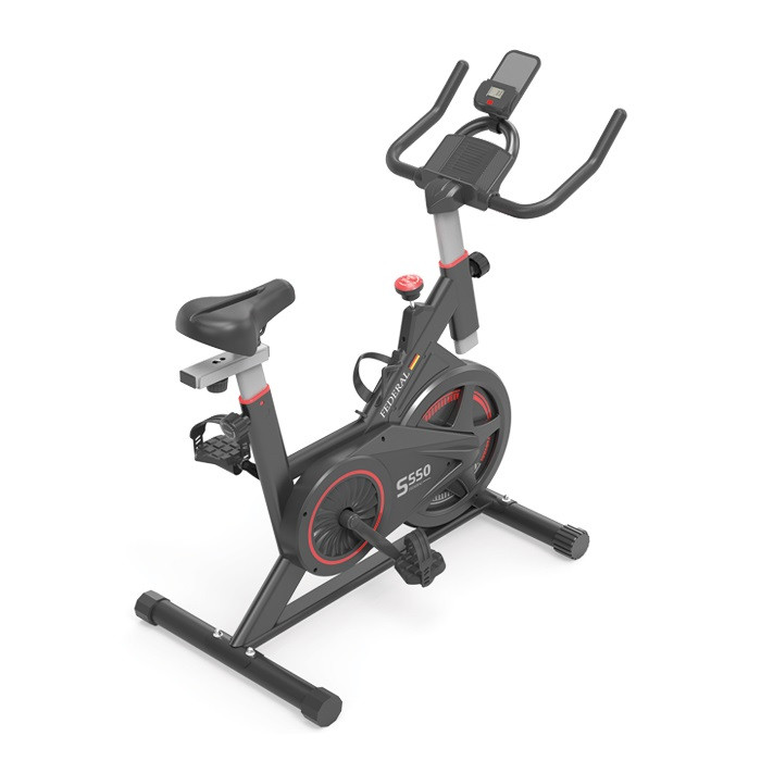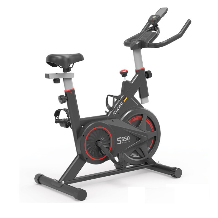 دوچرخه اسپینینگ فدرال مدل FEDERAL-S550 با فلایویل سنگین 10 کیلوگرمی نسل جدید اسپینینگ فدرال است که بهترین شرایط تمرین را برای شما فراهم میکند، همچنین دستگاه دارای صفحه نمایش حرفه ای و صندلی با قابلیت تنظیم در دو حالت افقی و عمودی میباشد. دوچرخه اسپینینگ مدل FEDERAL-S550 را به یکی از بهترین انتخاب ها برای برای استفاده در باشگاه و در منزل کند . تحمل وزن این دوچرخه حداقل 100 کیلوگرم است . ابعاد دستگاه 104 * 46 *114 سانتی متر میباشد، دوچرخه اسپینینگ FEDERAL دارای پدال های با نگه دارنده پا و همچنین قابلیت تنظیم ارتفاع دسته ها و کنسول شرایط راحتی را در زمان تمرین برای کاربر فراهم میکند . دوچرخه اسپینینگ مدل FEDERAL-S550 دارای بدنه مقاوم و با کیفیت ، با طراحی زیبا از لحاظ بصری نیز شما را راضی خواهد کرد . سیستم تنظیم فشار دستگاه به صورت لنت و مجهز به استپ آنی میباشد . قابلیت تنظیم دسته به صورت عمودی فراهم گردیده و تنظیم زین هم به صورت عمودی و هم به صورت افقی قابل انجام میباشد . پایه جلو دستگاه دارای چرخ جهت جابجایی راحت دستگاه نیز میباشد . نمایشگر دستگاه سرعت مسافت کالری و زمان را نشان میدهد . دستگاه دارای هولدر نگه دارنده موبایل یا تبلت و هولدر نگه دارنده بطری آب نیز میباشد .