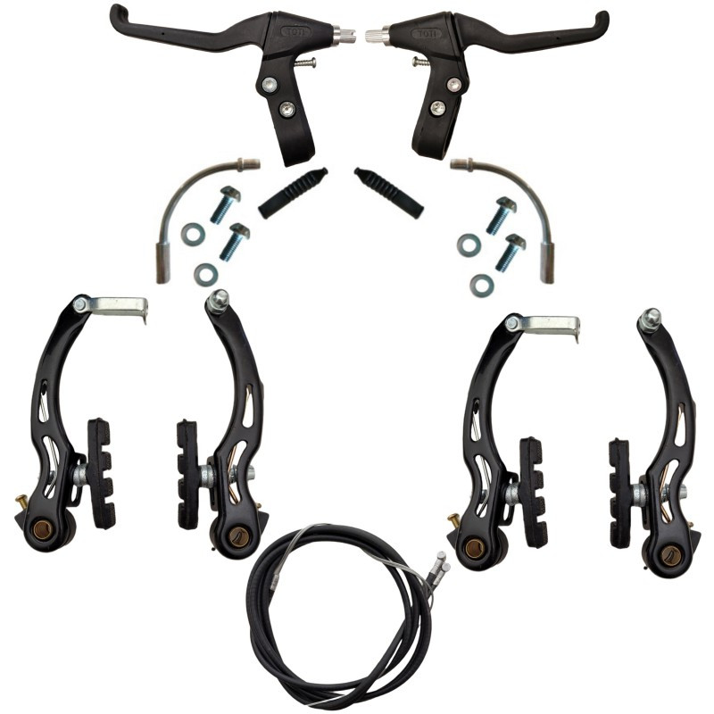 سایر توضیحات: محتویات بسته: 4 عدد پایه ترمز فلزی/ 2 عدد خم ترمز/ 4 عدد پیچ به همراه واشر/2 عدد سیم با روکش/ 2 عدد کت ترمز پلاستیکی/ 4 عدد لقمه ترمز / مناسب برای دوچرخه هایی که دوشاخ پیوت دار داشته باشند