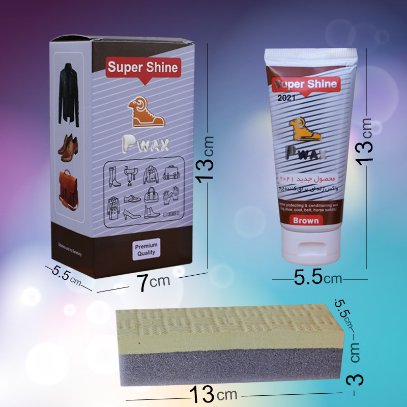جزئیات: برای چرمهای طبیعی کیف، کفش، کمربند، کاپشن، زین اسب و لبه کاری چرم با رنگ قهوه ای است.