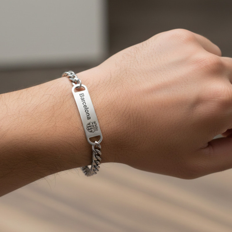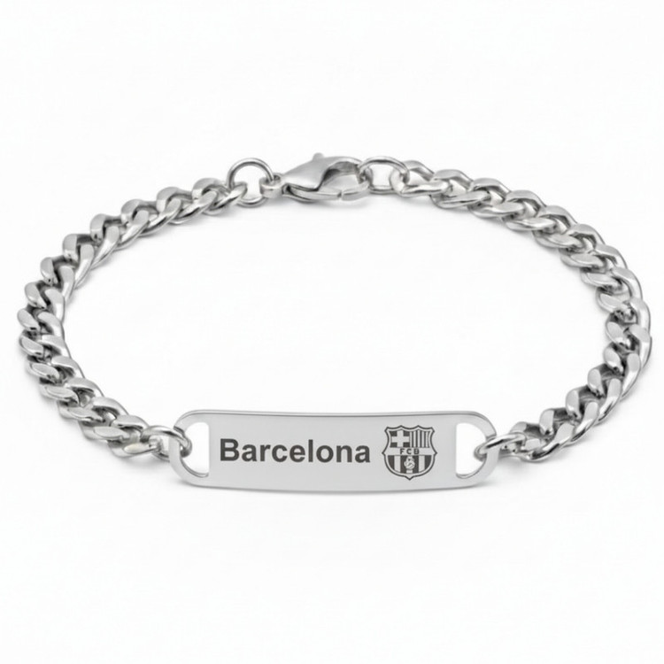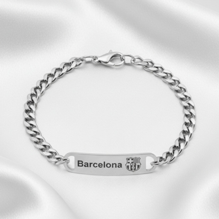 این دستبند، یک اکسسوری اسپرت و مدرن است که برای هواداران تیم فوتبال بارسلونا طراحی شده است. این دستبند بسیار زیبا و خاص طراحی و ساخته شده است.جنس این دستبند استیل رنگ ثابت و بدون حساسیت میباشد و در رنگ نقره ای موجود میباشد.قابل استفاده روزمره میباشد.