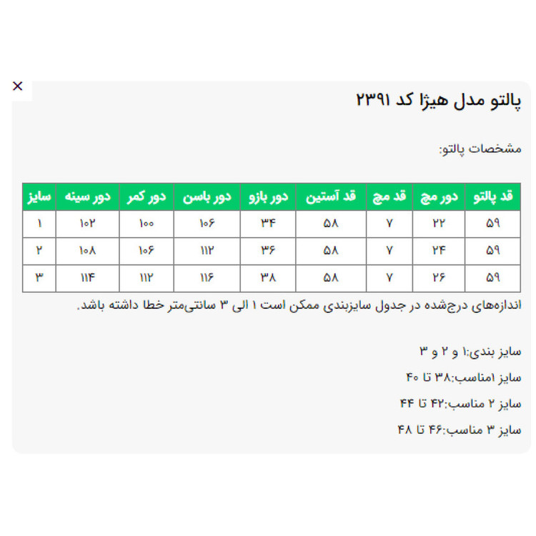 نوع پالتو زنانه