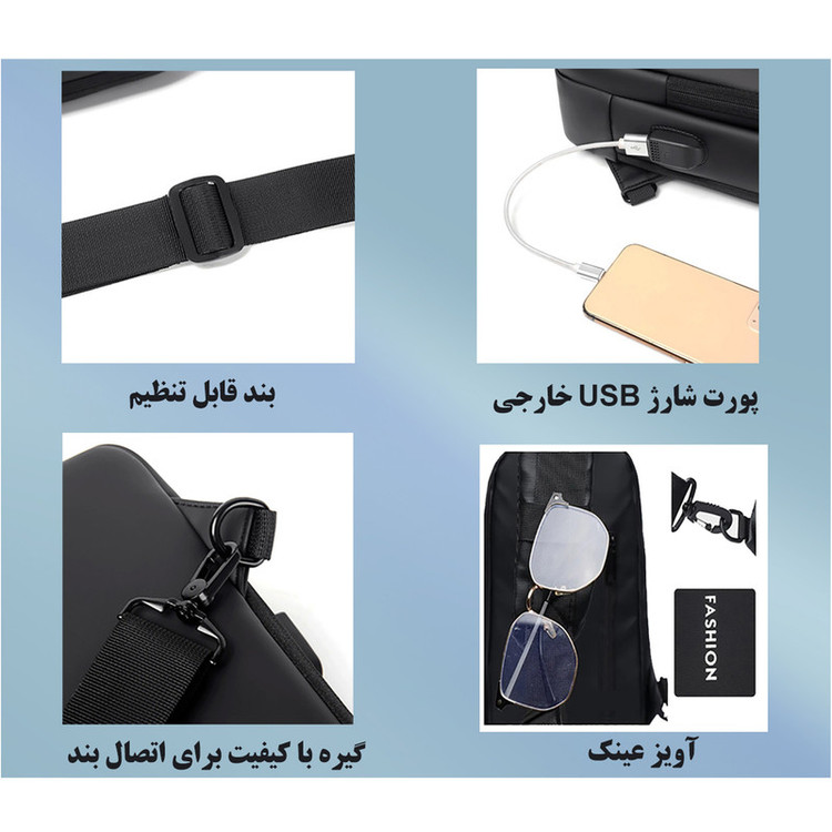 ویژگیهای کیف و کوله: قابلیت تنظیم بند , جای عینک , پد شانه , زیپ با قابلیت قفل شدن