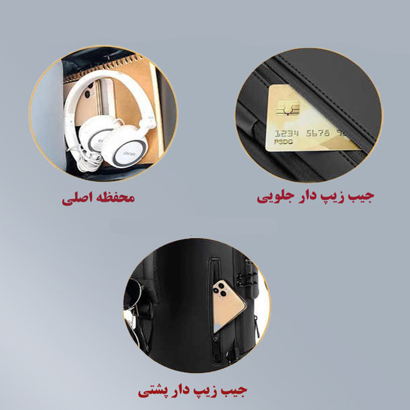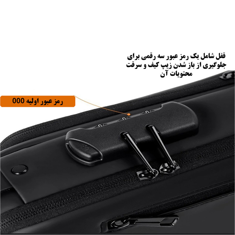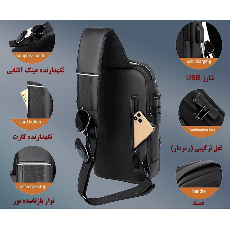 ویژگیهای کیف و کوله: قابلیت تنظیم بند , جای عینک , پد شانه , زیپ با قابلیت قفل شدن