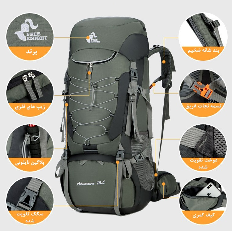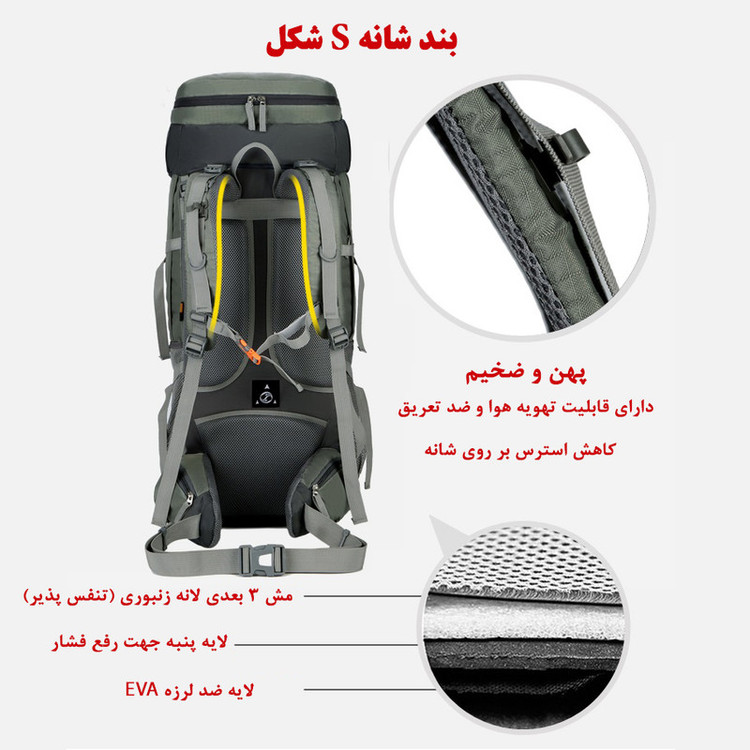 ویژگیهای کیف و کوله: پشتی پد دار , پد شانه , قابلیت تنظیم بند , دارای روکش ضد آب