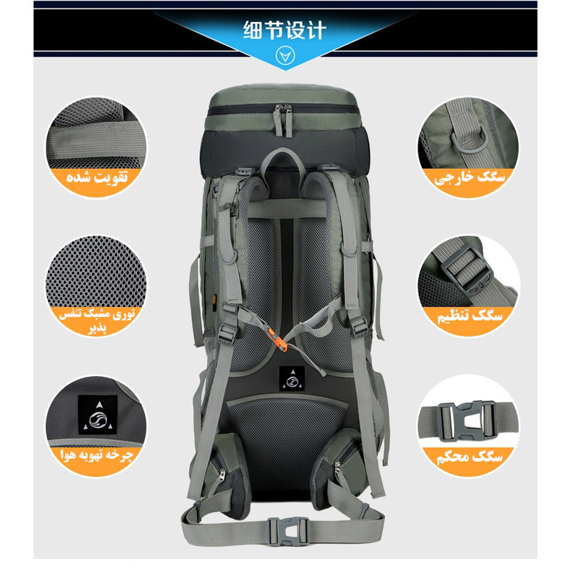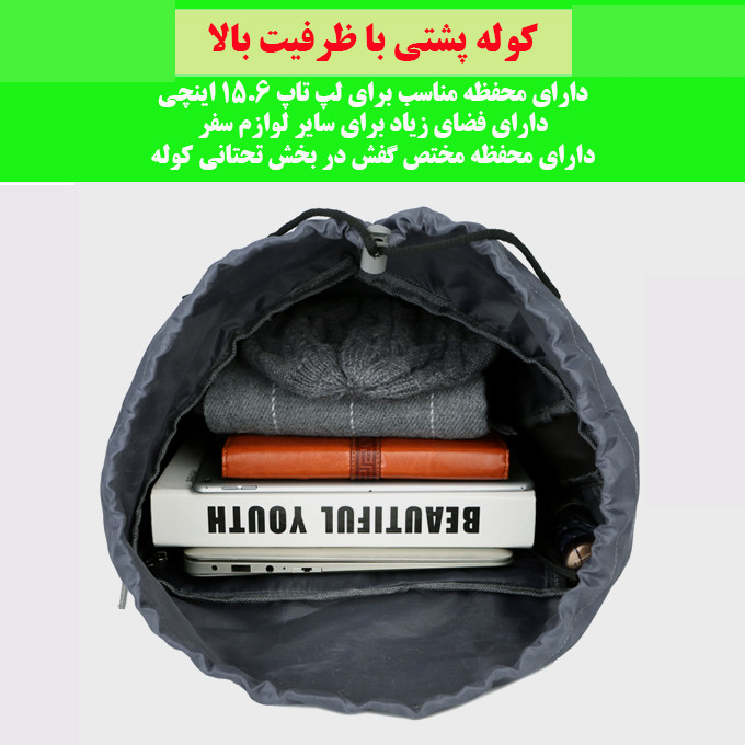 محفظه نگهداری کفش , محفظه نگهداری تبلت , محفظه نگهداری لپتاپ , دارای یک محفظه اصلی , جای قمقمه , جیب بیرونی , محفظه افزایشدهنده حجم