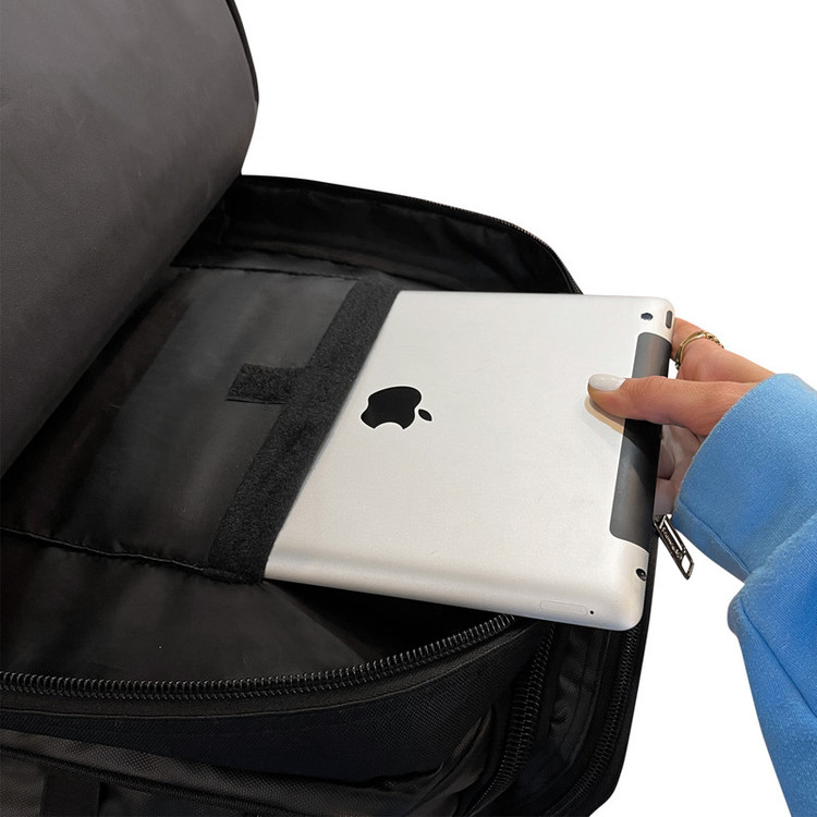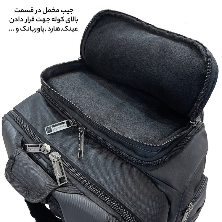 جیب بیرونی , جیب خودکار , جیب داخلی , دارای یک محفظه اصلی , محفظه نگهداری اسناد , محفظه نگهداری لپتاپ , آلبوم کارت شناسایی , جیب سکه , جیب سیم کارت , جیب طولی اسکناس , جیب کارت اعتباری , جیب کارت ویزیت , محفظه نگهداری پاسپورت , محفظه نگهداری کلید