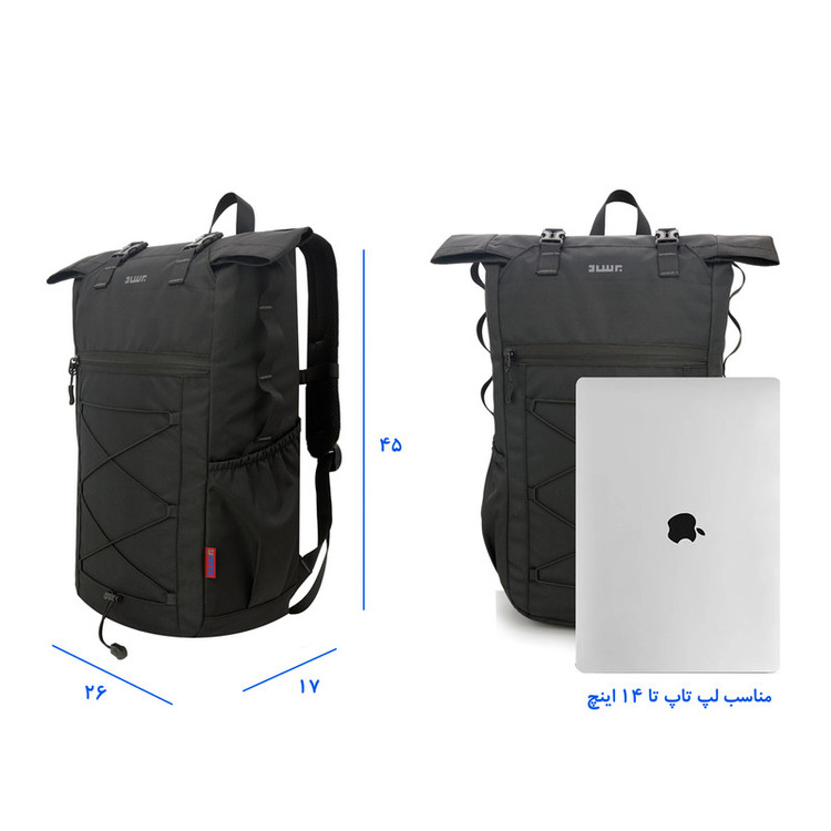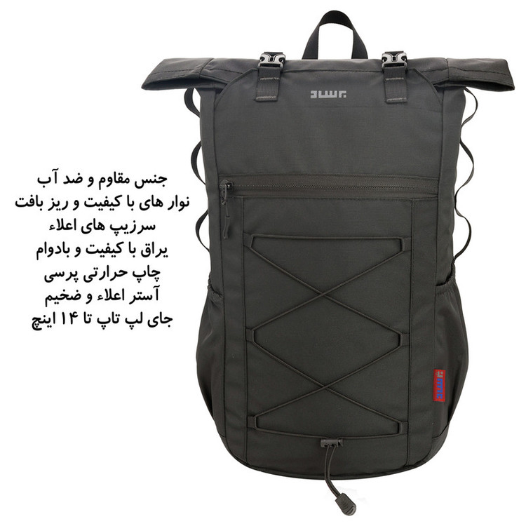 دارای یک محفظه اصلی , جیب داخلی , محفظه نگهداری لپتاپ , جای قمقمه