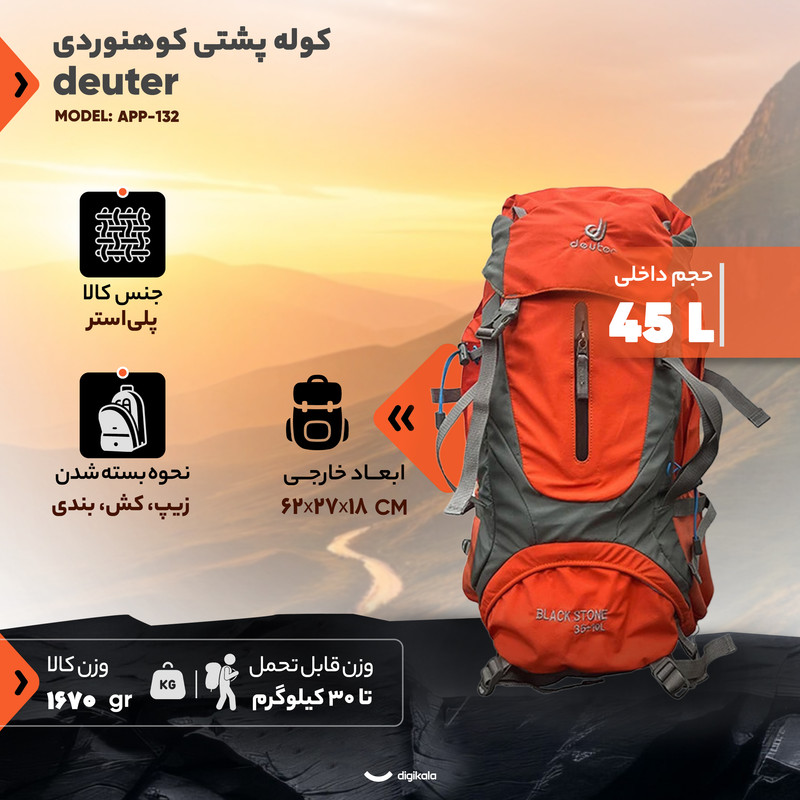 کوله پشتی کوهنوردی 45 لیتری دیوتر مدل APP-132