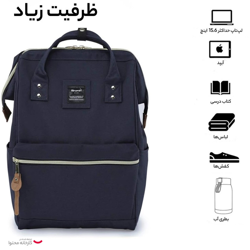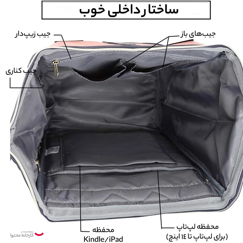 جیب بیرونی , جیب داخلی , دارای یک محفظه اصلی , محفظه نگهداری لپتاپ