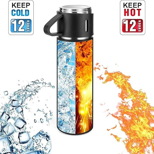 تولید شده از استیل ضد زنگ و مقاوم 304 - همراه 3 عدد فنجان - مناسب نوشیدنی های سرد و گرم