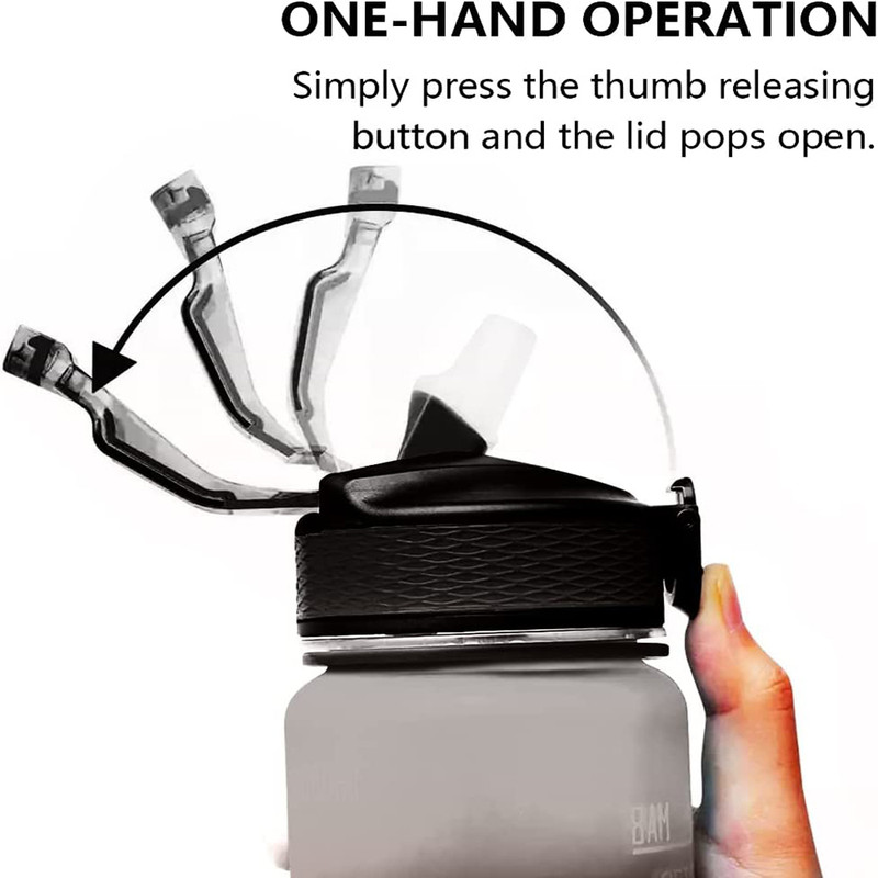 این بطری آب شما را تشویق می کند که در طول روز در هر کجا که باشید بدن خود را آبرسانی کنید تا سالم تر باشید. یخ زدن نوشیدنیهایتان در یک روز گرم عالی است. خیالتان آسوده باشد؛ بطری ضد نشت حتی اگر وارونه باشد به دلیل درزگیری حلقه سیلیکونی به هیچ عنوان نمی ریزد. علاوه بر آن، محفظه بطری از ورود گرد و غبار به داخل آن جلوگیری می کند. به لطف بطری آب 1 لیتری با دهانه گشاد، خود را با چای، قهوه یا هر یک از آب میوه و نوشیدنی ها شاداب کنید. این بطری جمع و جور با طراحی هوشمندانه و به دلیل مواد سبک وزن، روی دستان شما سنگینی نمی کند. بازو بستن در عرض چند ثانیه امکان پذیر است. دهانه عریض امکان پر کردن سریع و بدون ریزش را فراهم می کند، بطری ها را به راحتی تمیز می کند و اضافه کردن میوه یا تکه های یخ را آسان می کند. بند روی بطری، حمل را آسان می کند. فقط یک فشار سریع تا بتوانید به طور منظم آب بنوشید. همچنین این بطری برای بردن به باشگاه، مسافرت، دوچرخهسواری، پیادهروی، پیکنیک و ... مناسب است.