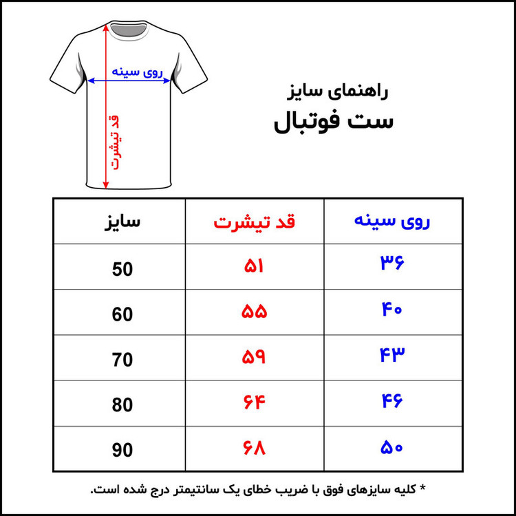 جهت تعیین سایز به جدول موجود مراجعه فرمائید.