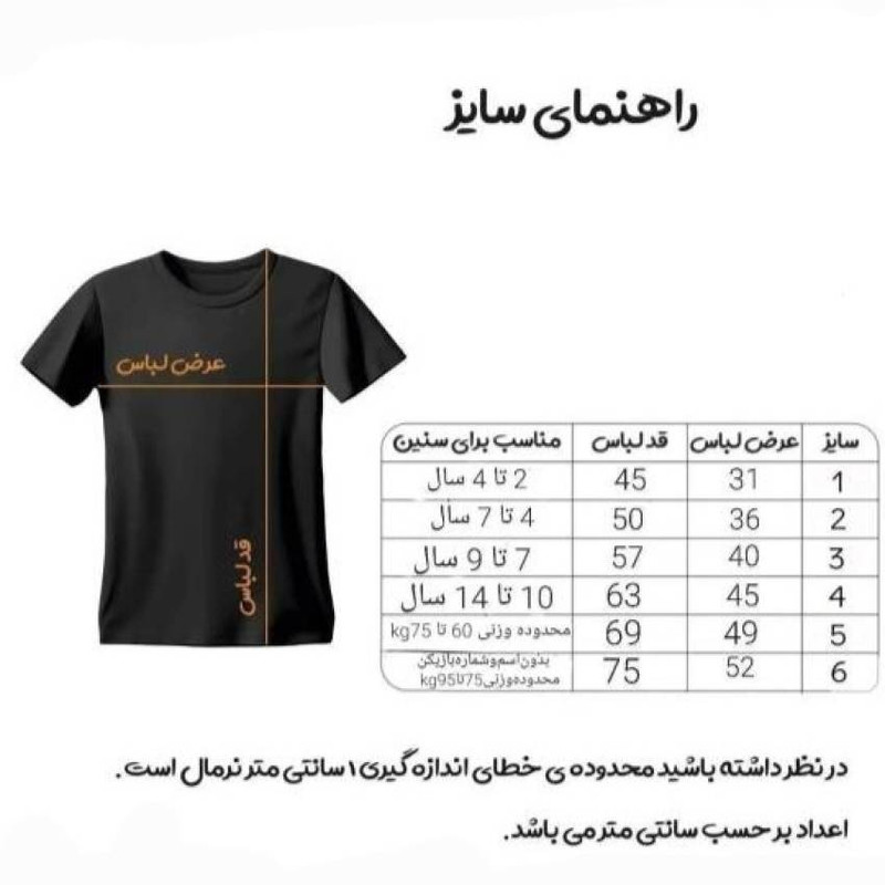 قبل از ثبت سفارش حتما مطابق با جدول سایز را اندازه بگیرید سپس سفارش خود را ثبت کنید.