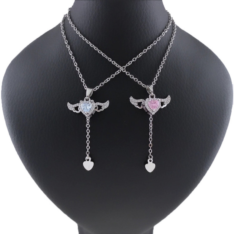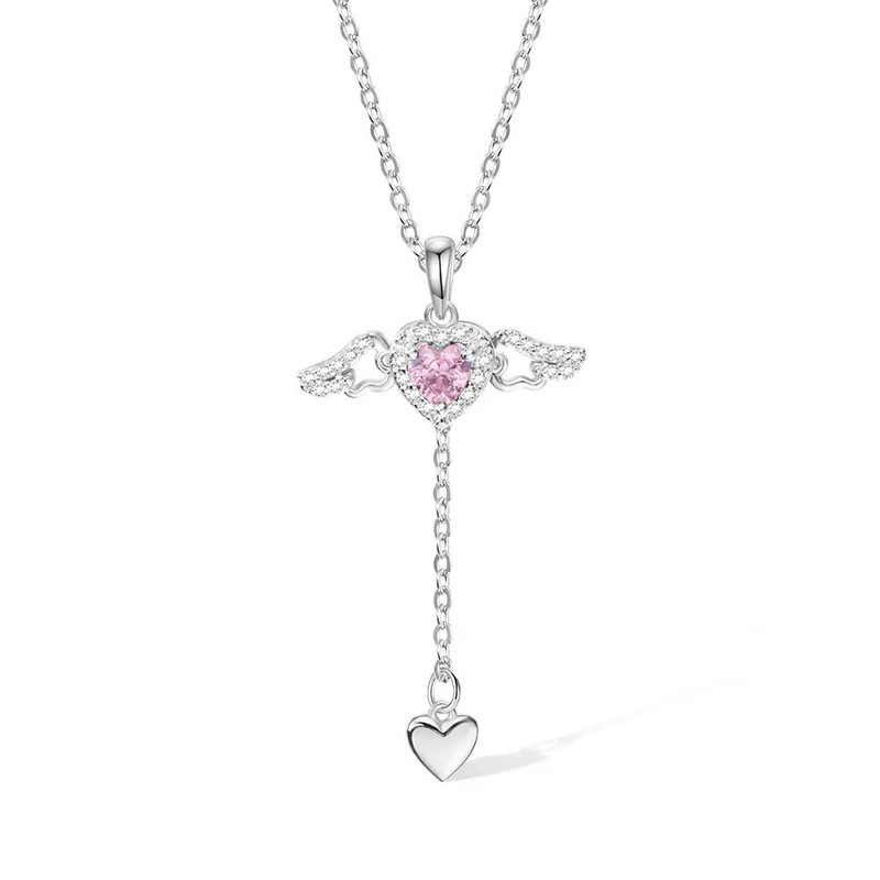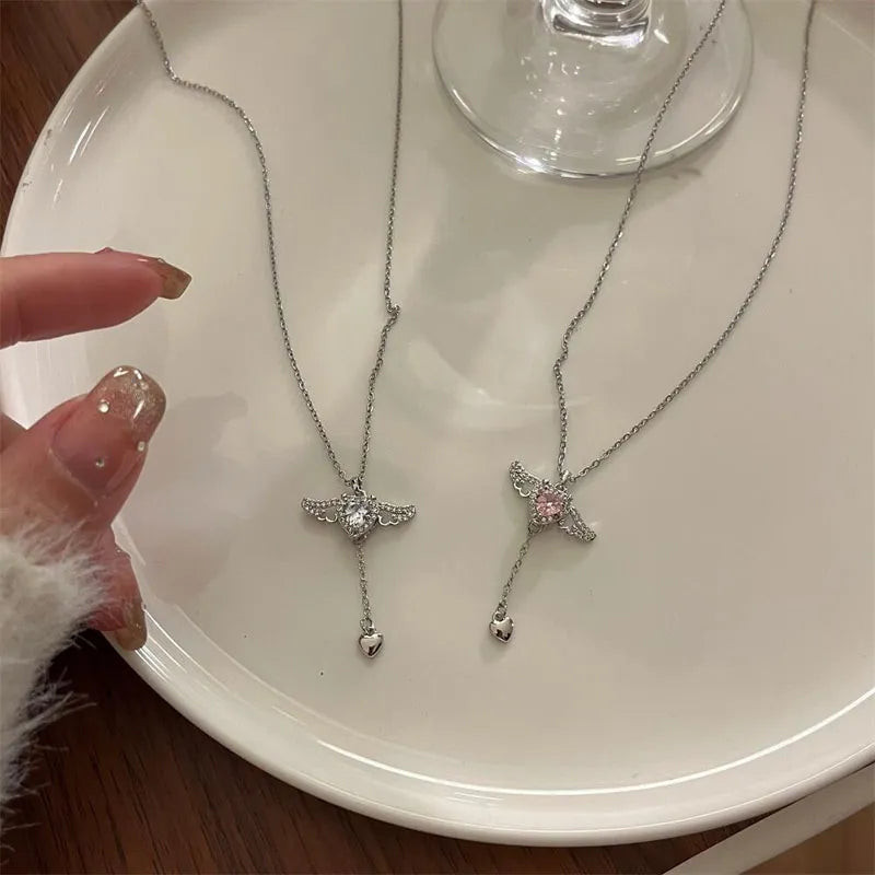گردنبند دخترانه مدل قلب بالدار قلب فرشته با بال متحرک بسته 2 عددی