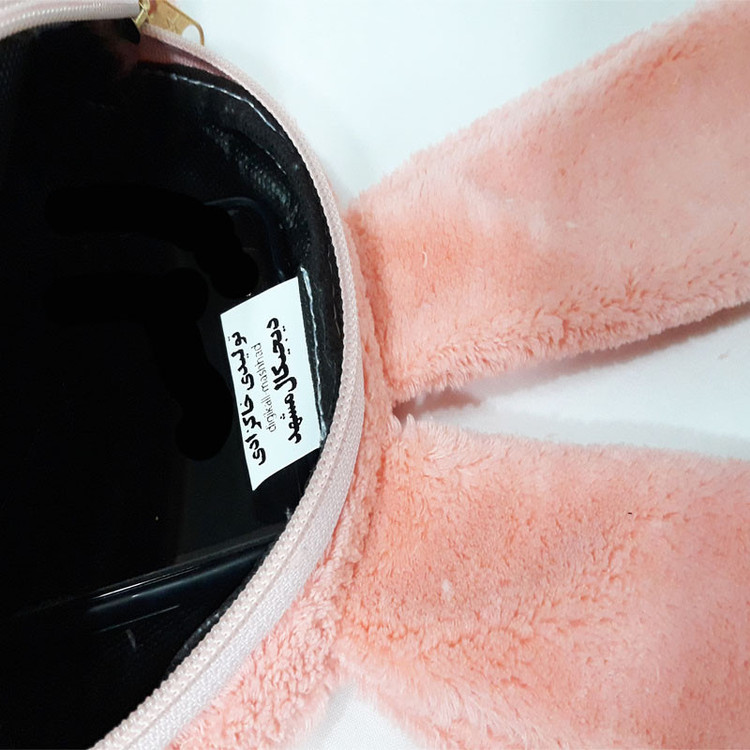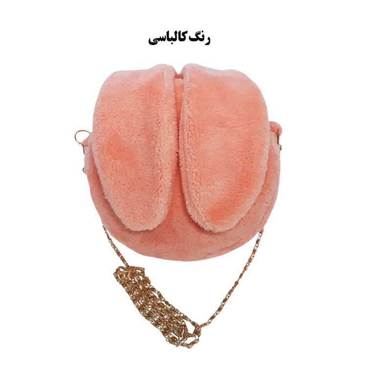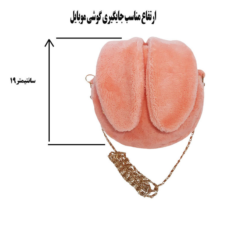 کیف دوشی دخترانه طرح خرگوش به شکل دایره با قطر 19 سانتیمتر و ضخامت 6 سانتیمتری مناسب برای جایگیری گوشی موبایل - از جنس پارچه نیوسافت با خزهای کوتاه