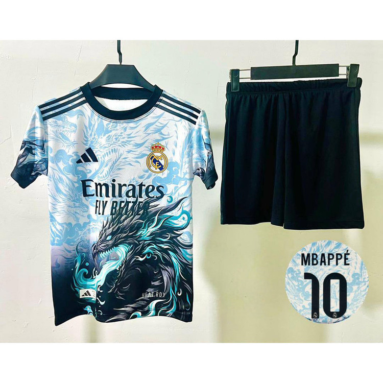 ست تی‌شرت و شلوارک ورزشی پسرانه مدل امباپه رئال مادرید اژدها کد 510