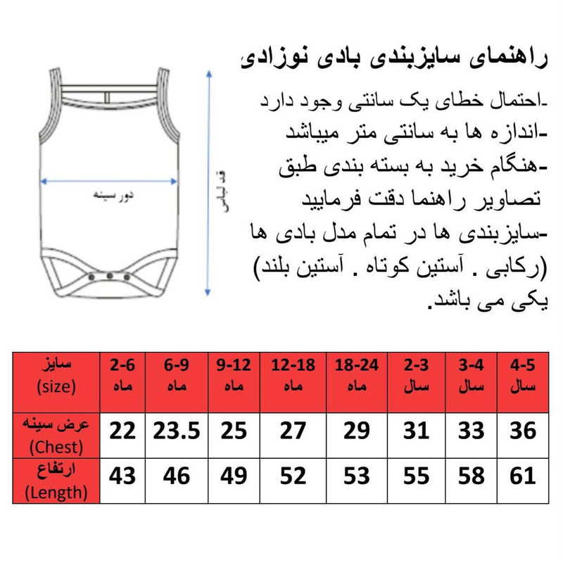 پنبه 40 درصد پلی استر 30 درصد الیاف نخی 20 درصد موجود در 7 سایز متفاوت بسیار لطیف و نرم سازگار با پوست نوزاد شما مناسب فصل پاییز بهار و زمستان توجه توجه سایز های 1 تا 3 برای راحتی نوزاد سرشانه دکمه ای می باشند