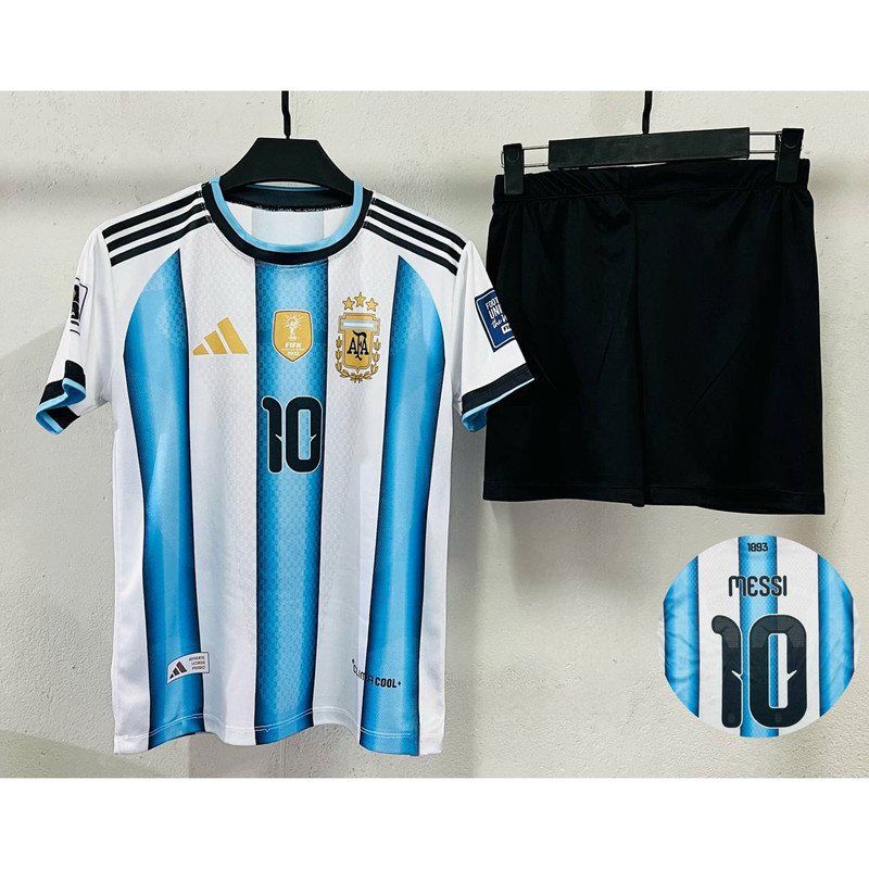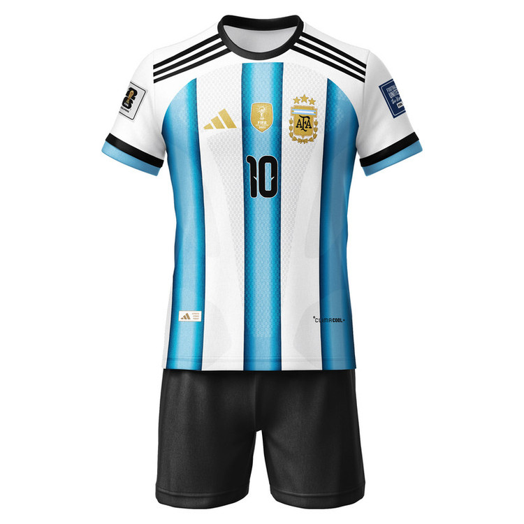 ست تی‌شرت و شلوارک ورزشی پسرانه مدل مسی آرژانتین کد 522