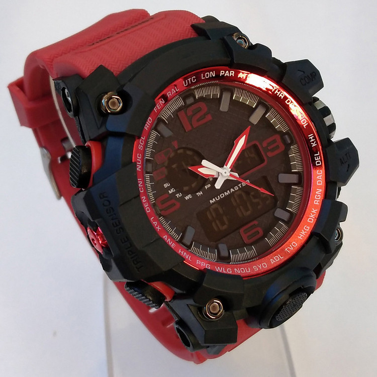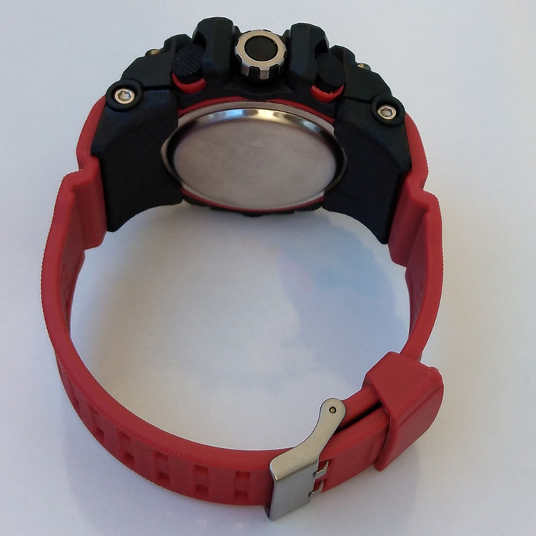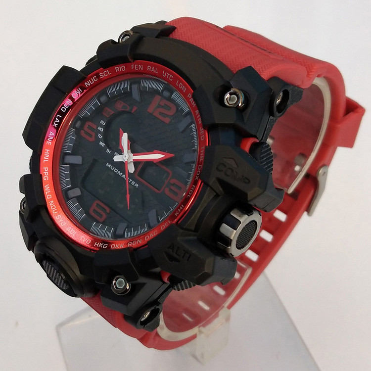 دو زمانه ( آنالوگ و دیجیتال ) ضد ضربه پشت(چهار پیچ) دارای آلارم کرنومتر تاریخ و روزشمار چراغ دید در شب