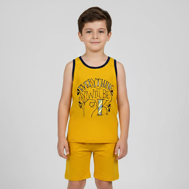 ست تاپ و شلوارک راحتی پسرانه آریان نخ باف مدل 47625