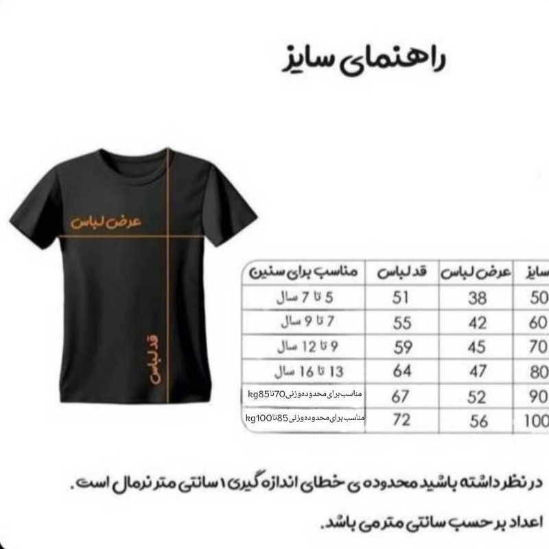 لطفا قبل از ثبت سفارش حتما مطابق با جدول اندازه بگیرید سپس سفارش خود را ثبت کنید.