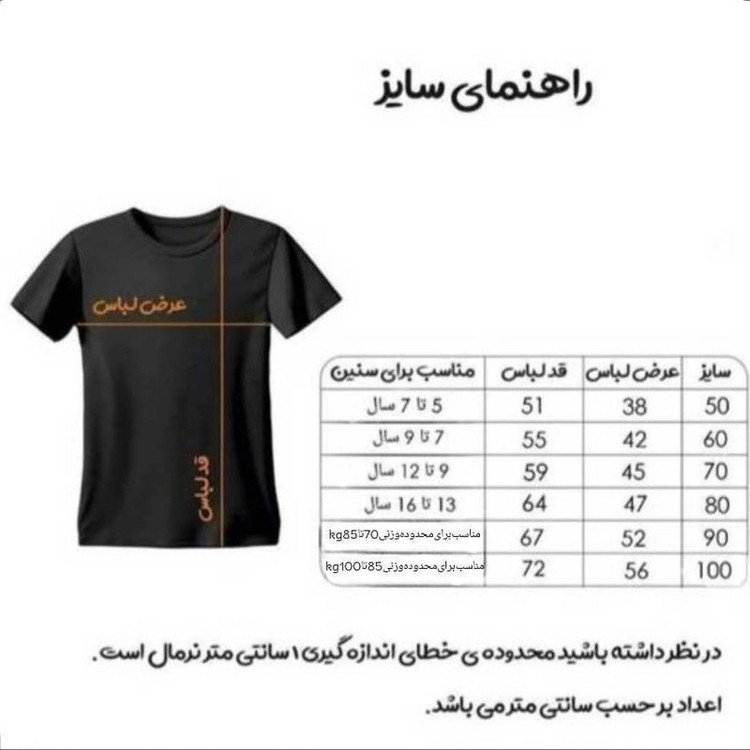 لطفا قبل از ثبت سفارش حتما مطابق با جدول اندازه بگیرید و سپس سفارش خود را ثبت کنید.
