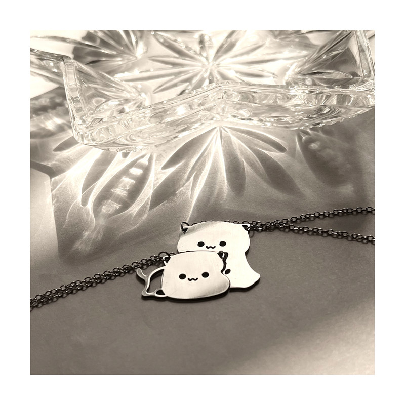 گردنبند دخترانه مدل دوستی گربه بسته 2 عددی