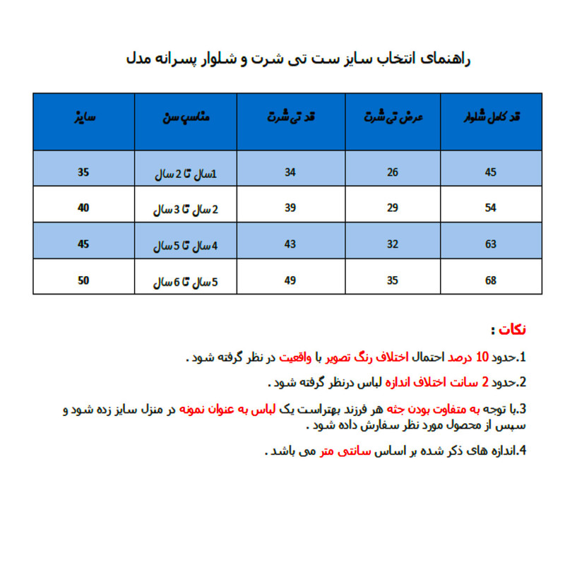 جزئیات: سایز 1 تا 2 سال = 35 سانت سایز 2 تا 3 سال = 40 سانت سایز 4 تا 5 سال = 45 سانت سایز 5 تا 6 سال = 50 سانت