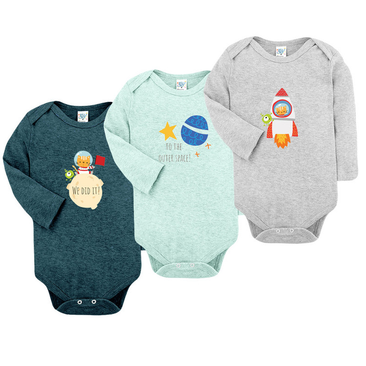 بادی آستین بلند نوزادی نیل کوک مدل Space Melange مجموعه 3 عددی