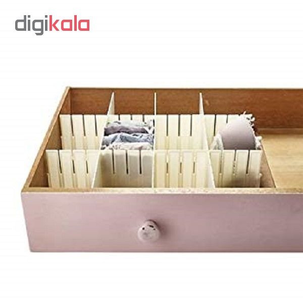 تقسیم کننده کشو ساخته شده از جنس ABS بوده که مناسب براى مرتب کردن وسایل داخل کشو بوده و امکان ایجاد کردن فضا در سایز های مختلف را دارد. این محصول با نصب سریع و آسان دارای وزن سبک بوده و در پکیج هر محصول شش عدد خشاب با قابلیت جدا شدن از یکدیگر وجود دارد. این محصول قابل استفاده برای کشو های آشپزخانه، اتاق کار، اتاق بچه ها، اتاق خواب و غیره بوده و قابل شستشو نیز می باشند.
